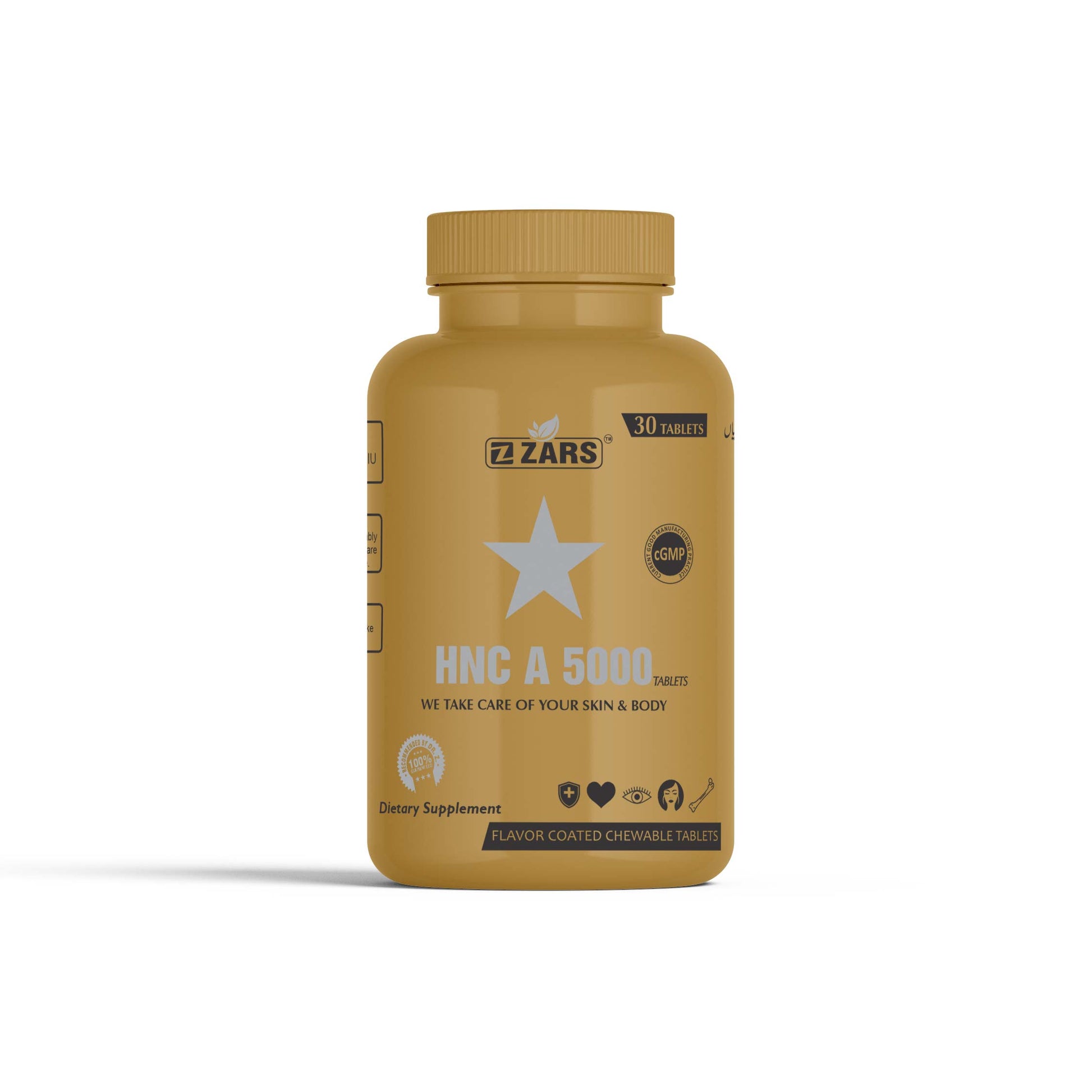 Each film-coated tablet of HNC A 5000 delivers 5000 IU of Vitamin A (USP), a vital fat-soluble nutrient known for its essential roles in vision, immune function, and healthy skin. Formulated to meet USP (United States Pharmacopeia) standards, this product ensures reliable potency, purity, and safety.