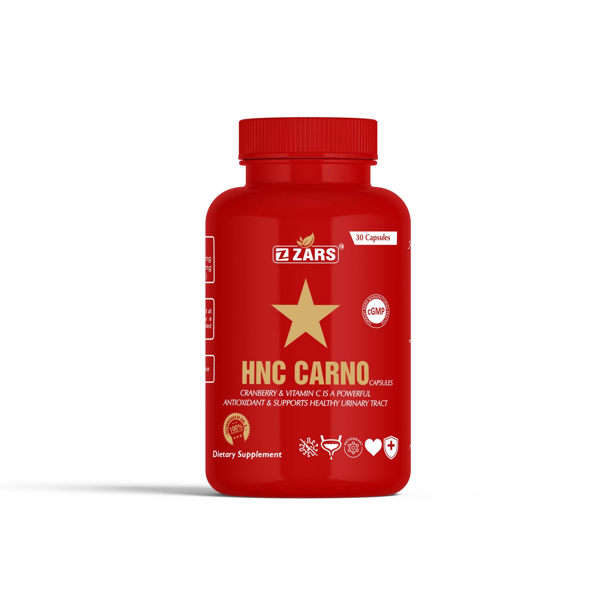 Maintain a healthy urinary tract and support your body’s natural defenses with HNC CARNO—a premium blend of Cranberry Extract and Vitamin C, carefully formulated to meet ZARS quality specifications. Each capsule provides 250mg of Cranberry Extract (USP) and 30mg of Vitamin C (BP), delivering powerful support for urinary and immune health.