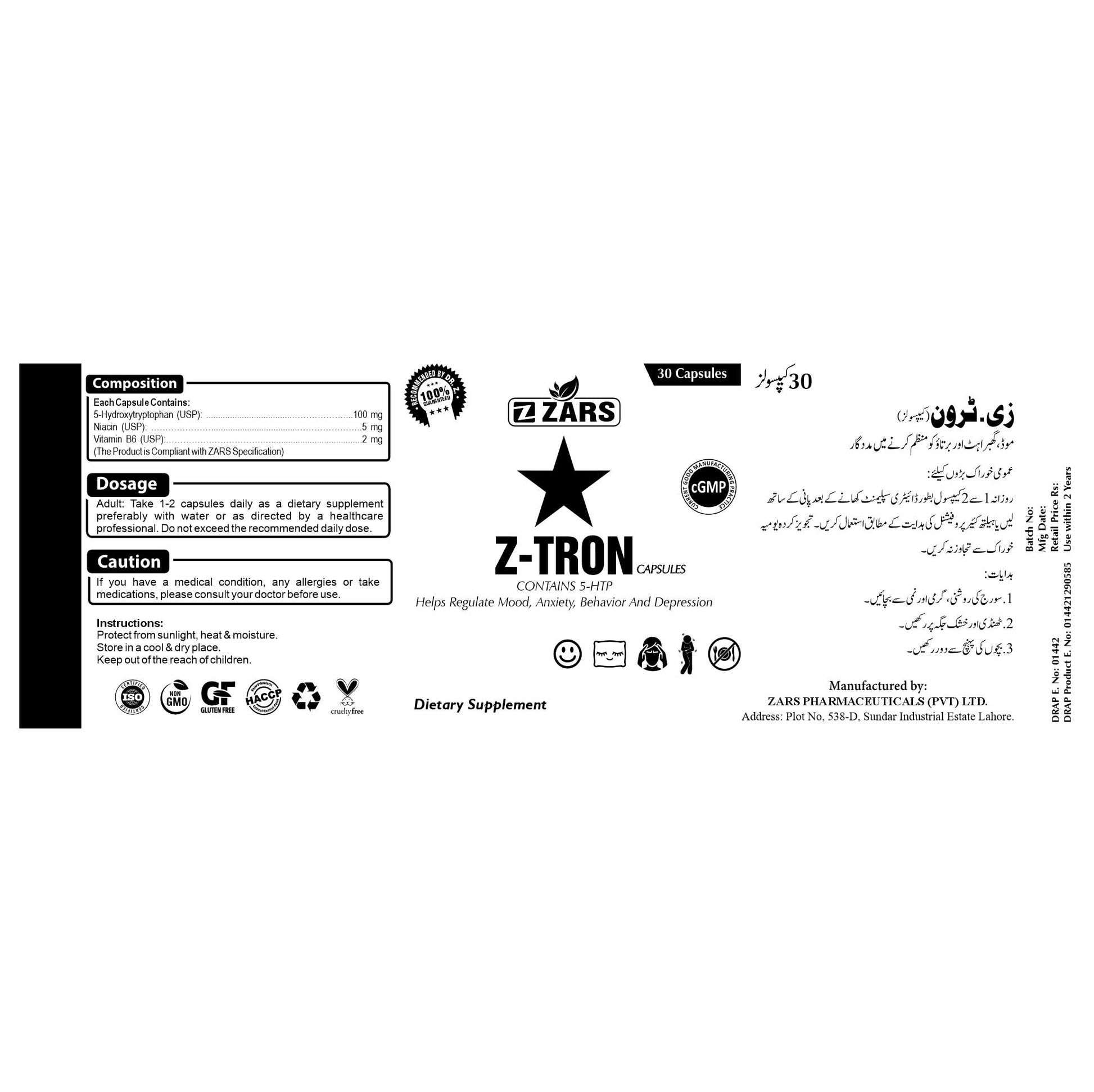 Promote emotional balance, restful sleep, and overall mood support with Z. Tron—a thoughtfully formulated blend of 5-HTP, Niacin, and Vitamin B6. Each capsule contains 100mg of 5-Hydroxytryptophan (USP), 5mg of Niacin (USP), and 2mg of Vitamin B6 (USP), all compliant with ZARS specifications to ensure purity, safety, and effectiveness.